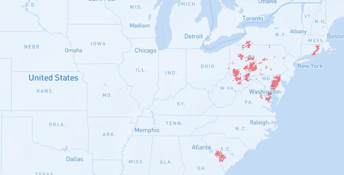 • Atlantic broadband is available in 8 states and counting, with the widest network availability in delaware covering 4.93.